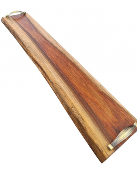 This board features natural live edge that showcase the beauty of the wood’s original shape, fitted with beautiful vintage-style handles for easy serving and an elegant touch.